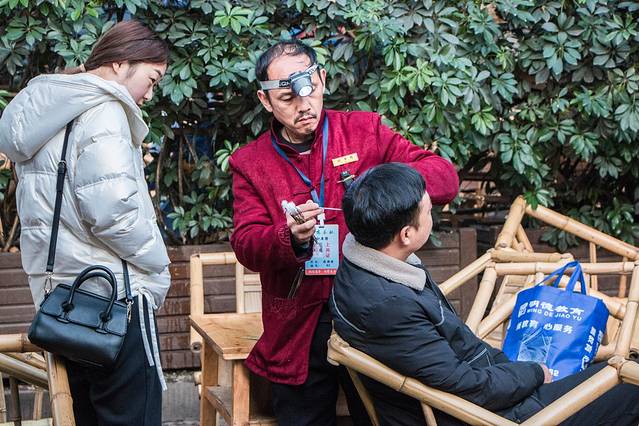除了喝茶,人民公园的另一大乐趣就是【掏耳朵】,这门古老的手艺在很多地方都有见到,但只有人民公园这里做得最专业,每位技师都是编号上岗,各种细微服务的收费也公开透明,掏掏耳朵很舒服,值得大家体验一下~