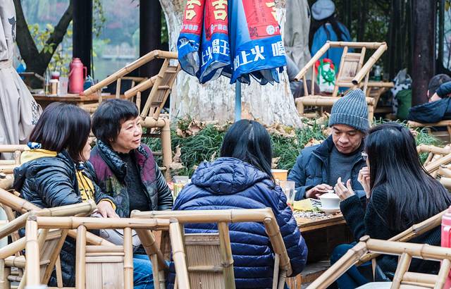 成都人的悠闲,体现在一杯盖碗茶中,无论是周内工作日还是周末假期,随时都是一群成都人坐在人民公园喝茶水,所以外地游客也常常会发出灵魂拷问:“成都人都是不上班的吗?”