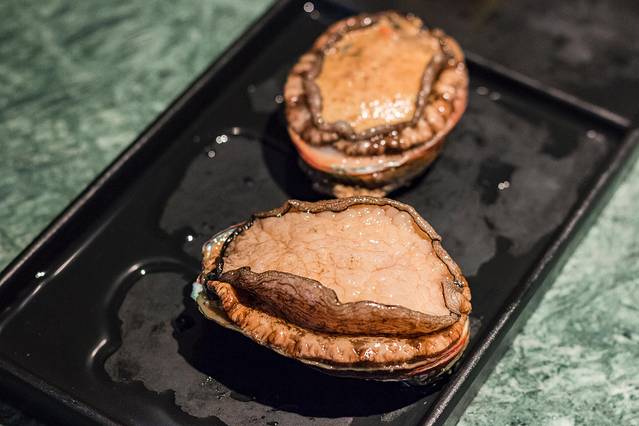 【鲍】新鲜的鲍淋上柠檬汁,煮熟之后切碎,拌上秘制调料口味极品。