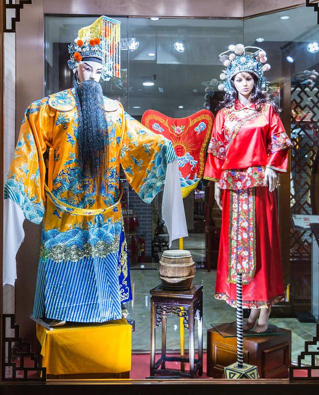 看完之后还可以在旁边店里试下戏服,不过大晚上的看着这服饰还有掉害怕,哈哈~