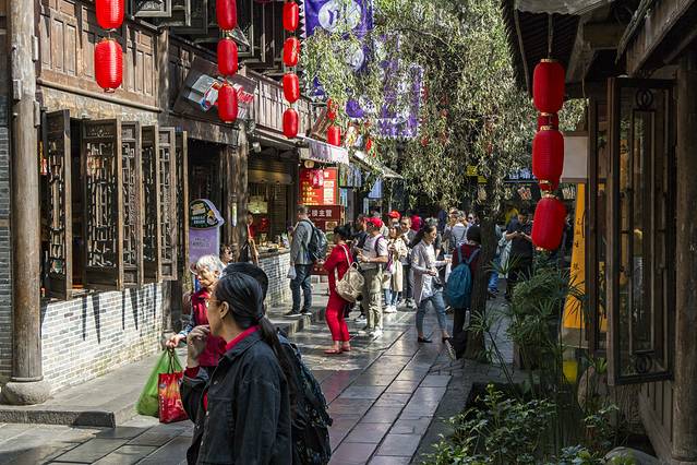 人民公园距宽窄巷子东门仅800余米,从公园出来后公交2个站、步行10分钟即可切换到这个成都最有特色的街区来。说起来,前几天美国电视台评选出“全球最美街区”,其中亚洲上榜了两处,排名全球第一的就是成都锦里,这也引起了当地人的讨论:“同为成都两条古街,到底是锦里美还是宽窄巷子更美?”