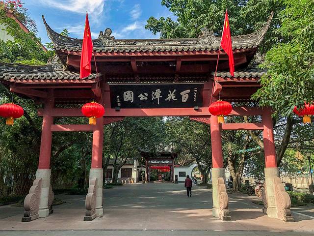 现在的百花潭公园始建于1881年,距今已有一百多年的历史,但其前身却可以追溯到大唐时期,文字记录的历史已超过千年,只可惜后面在河流改道、淤泥沉淀等各种因素影响下,原始的百花潭逐渐消亡于历史中,只有这一处新修的留了下来。