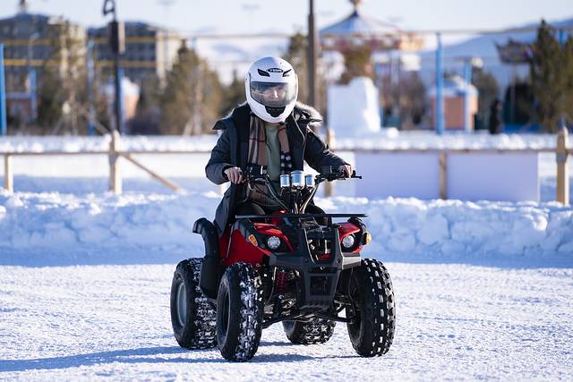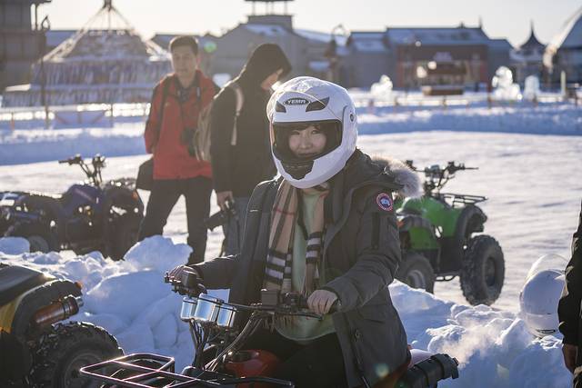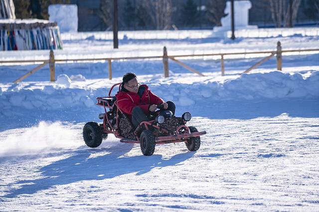 当然了,到了冰雪覆盖的坝上,自然要high玩冰雪!雪圈、冰车这些都是“常规项目”,开上雪地卡丁车在雪地来次漂移才叫high!美女帅哥都戴上头盔开上一段,这是冰雪世界的速度与激情。