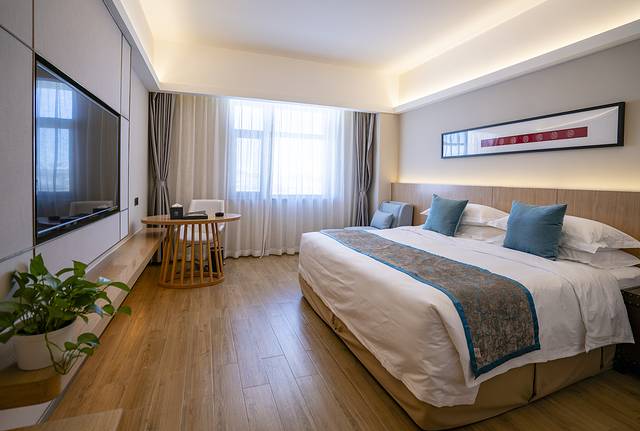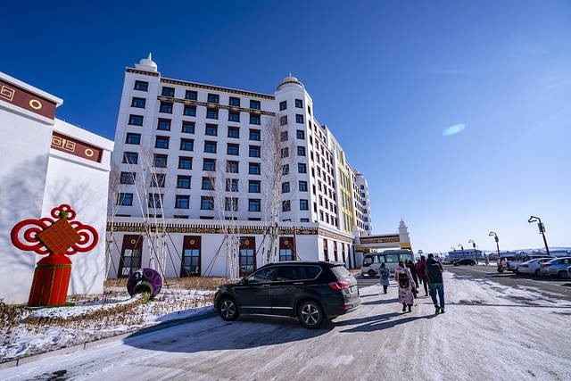 “马”的元素在这里随处可见。梦马酒店的客房面积宽敞,视野也是极好拉开窗帘,在房间里就能将冬日落雪的坝上草原尽收眼底,草原上起伏的丘陵与沃野都变成了一片白色的世界,蓝得醉人的天空下,梦马酒店的红墙在白雪的反光下甚是抢眼。酒店里设施也很丰富,儿童游乐场、健身房、书吧都一应俱全,早餐丰富,房间也很宽敞,很适合家庭出行入住。