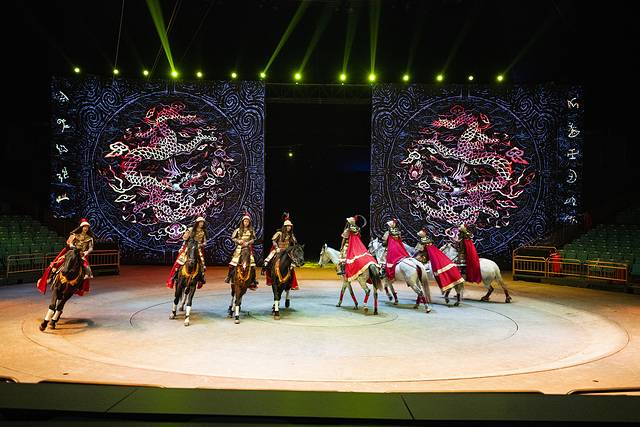 寒冷的冬天,就是需要一点活色生香,一些热辣新奇!中国马镇里的《满韵骑风》奇幻秀,无疑就是这种火热最好的注脚!表演水平非常高,全场70分钟左右,集满蒙文化、歌舞、杂技、马术于一体,无时无刻都扣人心弦,堪称全程无槽点,给隆冬带来满满的热情!