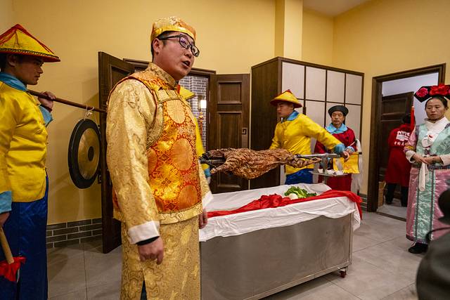 其中绝对不容错过的就是烤全羊!在中国马镇的美食街,有一家“天下第一烤羊”,烤羊地道不说,还有“贝勒爷”亲自致辞祝酒,可谓仪式感十足。