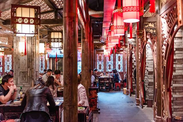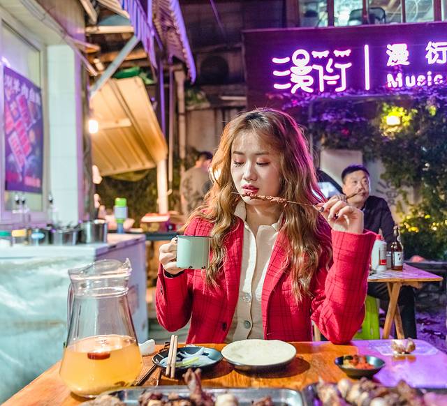 然而这条街说到底也就是普通的商业街,人多、虽然小吃多但味道也一般、价格贵。我不建议在这里吃东西,但逛逛拍拍还是非常不错的,川剧人物、糖画等等都很有意思。