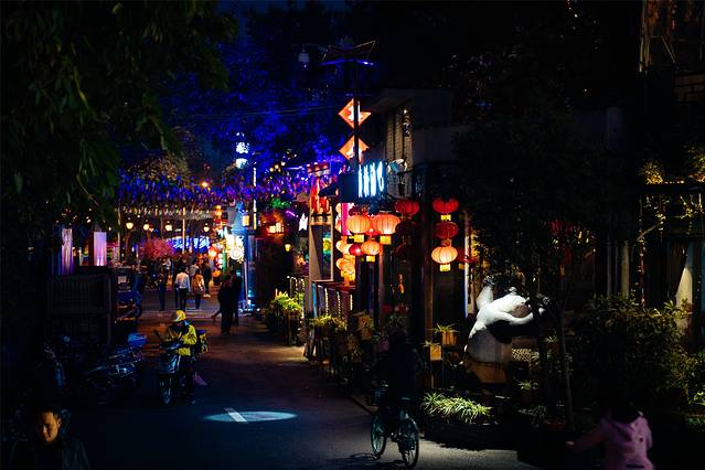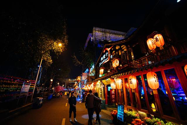 成都市一座越晚越热闹的城市,如果说东郊记忆是成都的798,那么九眼桥就是成都的后海,著名的酒吧一条街。