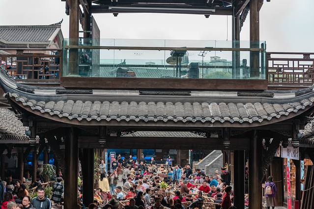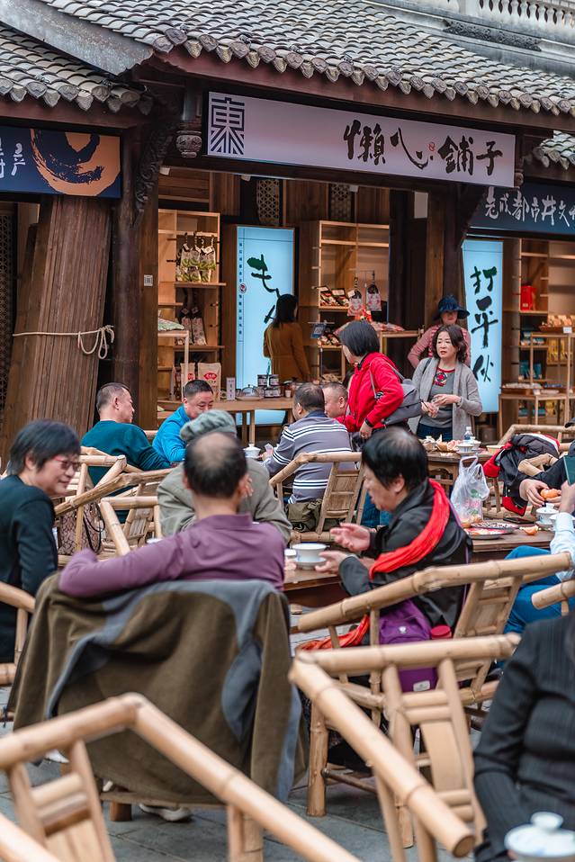 这里最热闹的就是吃茶了。在成都没有茶馆的地方,肯定就不是地道的成都生活。玩累了可以坐在这里休息休息,吃吃茶,吃点东西