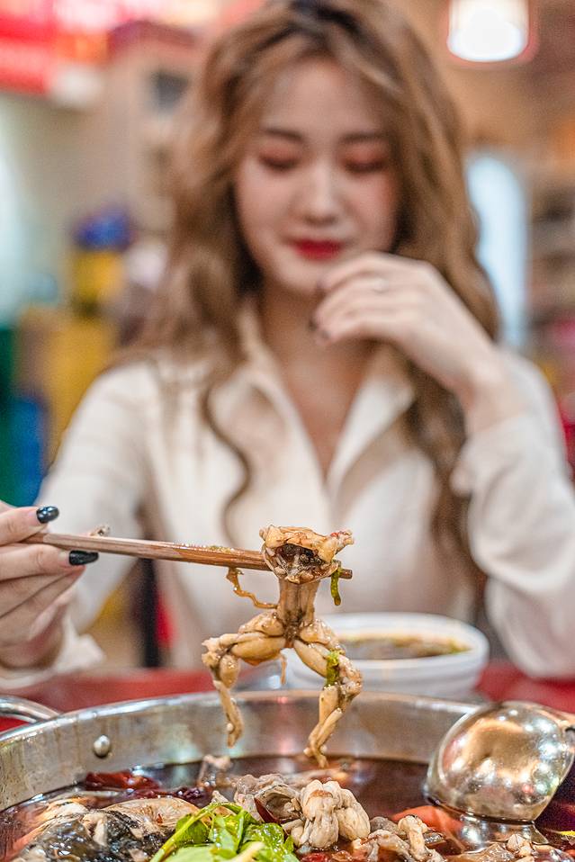 本来我对田鸡是排斥的,但当我吃到嘴里时:真香!牛蛙的肉无比鲜嫩,一抿就烂!肉质非常饱满,蘸上干碟或辣油,仿佛下一秒就要化在嘴里了!