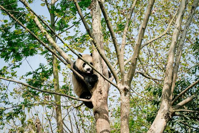 印象中的熊猫是笨拙的,可是没想到大熊猫竟然这么灵活,爬上树,还向我们吐舌头,也太可爱了吧!!