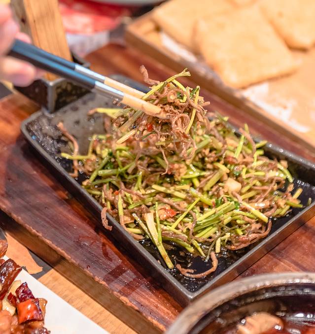 【麻辣牛肉】来到成都真的不停的在挑战底线,锅底已经狠辣了,这个麻辣牛肉简直辣上天了,我这个自诩为吃辣小魔王的人也败下阵来,真的不行,直到那天我才弄懂什么叫成都辣。