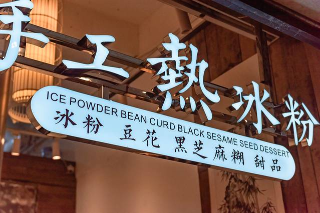 这家专门做川式甜品,冰粉是他们的招牌,还有豆花、凉糕、黑芝麻糊等等,种类很多,生意非常火爆,我们也跟风买了尝尝,味道出乎意料的好。