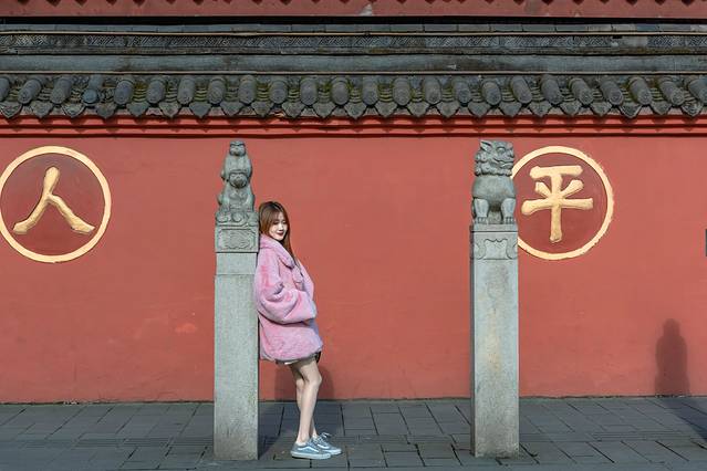 院外红墙金字青砖灰瓦,很有感觉,建筑也雅致精美,拍照超好看,不用门票,逛逛拍拍很不错。