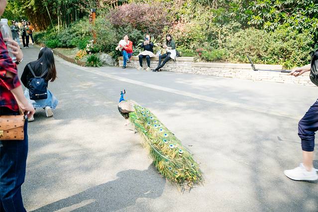 基地里不只有熊猫,还有各种小浣熊、孔雀、黑颈鹤等等珍稀保护动物,它们悠然自得的生活在这里,甚至胆大的还敢大摇大摆的走到路中间与游客们互动。