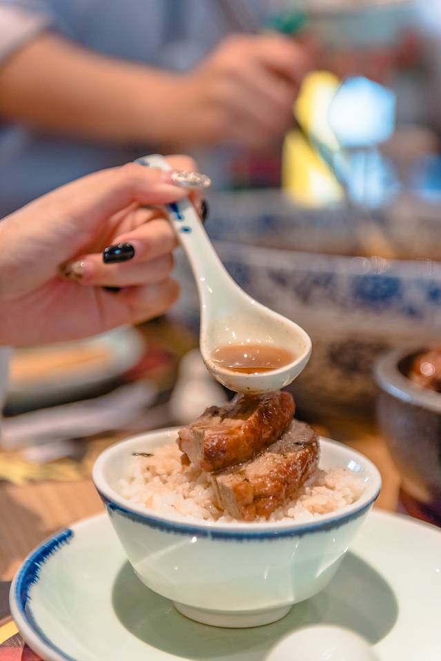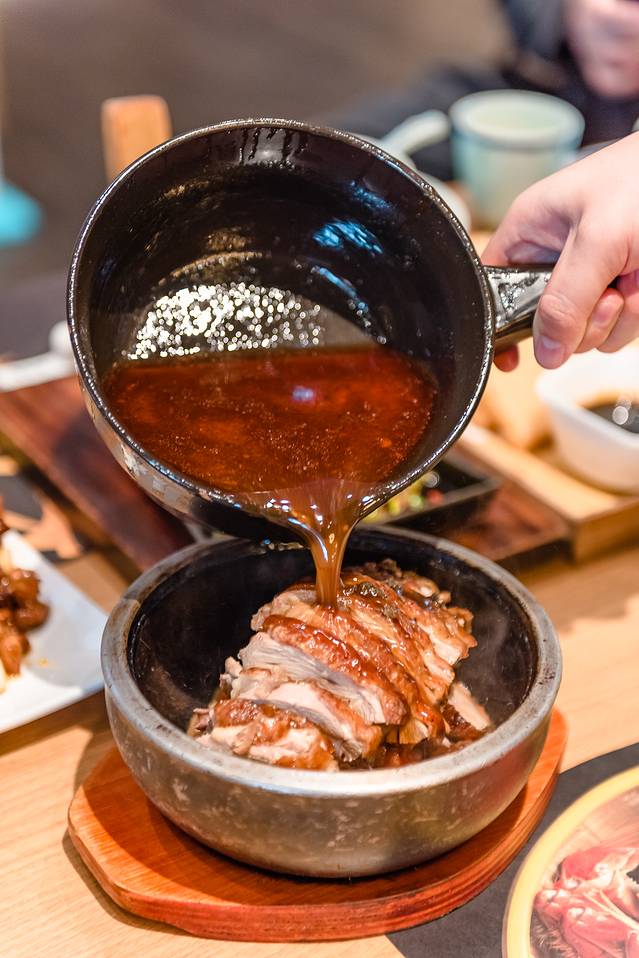 冒烤鸭的灵魂就在于卤水。淋上了汤汁的烤鸭,鸭皮并没有变得软塌塌的,依旧保存了烤鸭外层的脆与香,味道变得更浓了。鸭肉很嫩,并不像其他烤鸭一样干干柴柴的,有浓郁鲜香的老卤汁水的味道。