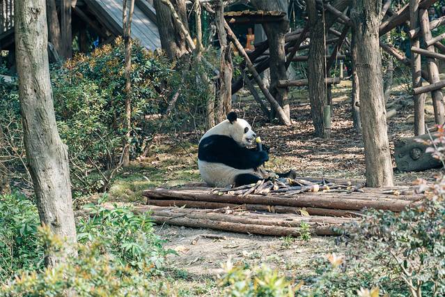 在熊猫基地可以近距离接触国宝熊猫,看他们顽皮地爬上爬下,憨憨的吃竹子、和饲养员们撒娇打闹,太幸福了,这些熊猫宝宝让我生出了留在动物园当一名饲养员的念头,嘿嘿嘿。