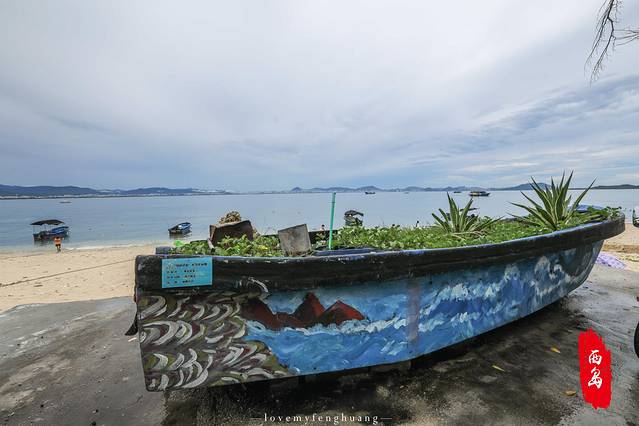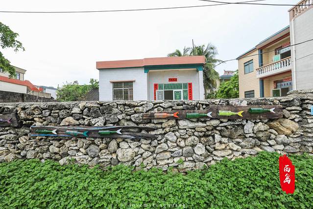 西岛渔村,这边有很多在建的民宿,珊瑚垒砌文化墙,破旧的渔船上,彩色的涂鸦,充满浪漫风情的小渔村。