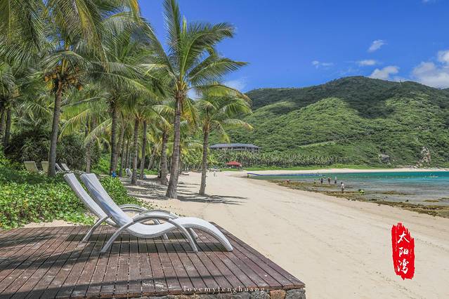 躺在躺椅上,眼前应了那句“面朝大海,春暖花开”,从上面俯瞰,整个海湾呈现U字形状,左边远处依稀可见 亚龙湾 ,这里没有人潮如织的 亚龙湾 ,整个沙滩上的游人不过20个,稀少的人烟,仿佛包场一般,可以肆意的玩水嬉戏,分为游泳区和礁石区,游泳区沙滩细腻,午后在阳光的照射下,沙滩还有淡淡的粉色,不用出国就能看粉色沙滩了,这里真的是太美了。
