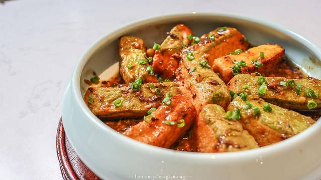 慢火8小时的酱鸭,一口下去,紧实的鸭肉搭配浓郁的酱香味道,醇厚而美味,盘子的造型像个活灵活现的鸭子,仿佛鸭子游上桌了,很特别。
