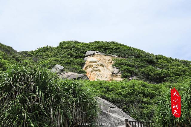 电瓶车终点站,在小月湾这边,再往前走就是小月湾度假酒店,景区里的一处酒店,下了车山上有一处大石雕,刻画的是我国古代伟大的哲学家和思想家之一的老子,这尊“老子望海”石雕背靠鳌山,面带思考的神色眺望着海洋,那深邃的双眸,守望着 南海 这片海域。