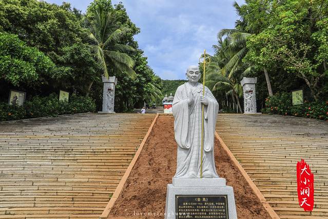 大唐高僧鉴真在前往 日本 的途中,天有不测,遇到台风,被台风吃到了 南海 的 大小洞天 ,从此和 海南 结下了不解之缘,因而在 大小洞天 有不少关于鉴真的“身影”,鉴真试海、鉴真沐海、鉴真群雕…