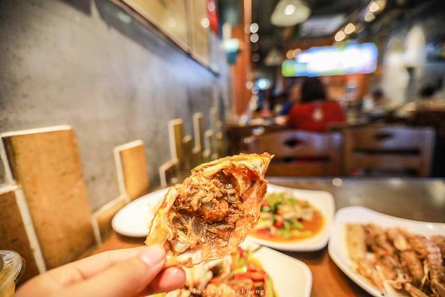 香辣蟹,平常家里最常见的吃法是清蒸,总觉得香辣的味道会掩盖了海鲜的鲜味,但是这家的螃蟹蟹肥膏多,川香的香辣口味,完全激发出了螃蟹的鲜味,吃到停不下来,如果怕弄脏了手,可以找店员要一次性的手套。