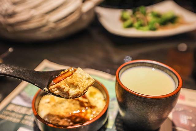 招牌的石磨一块豆腐配上现磨的豆浆,一口下去,满满的都香,我不会告诉你,它家的豆浆我连喝了3杯,真的很纯。
