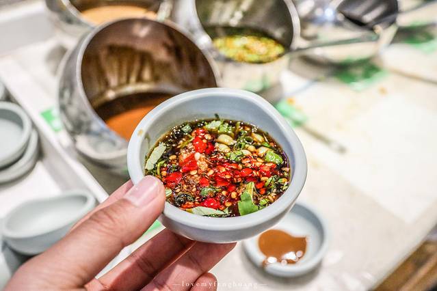 像吃火锅一样,自助小料自选,无线可续,麻将、腐乳、香菜、香葱、酱油、米椒、果仁碎、还有青柠,如果不知道要哪种口味,可以让小妹帮忙调制一份“最嗲调料”。