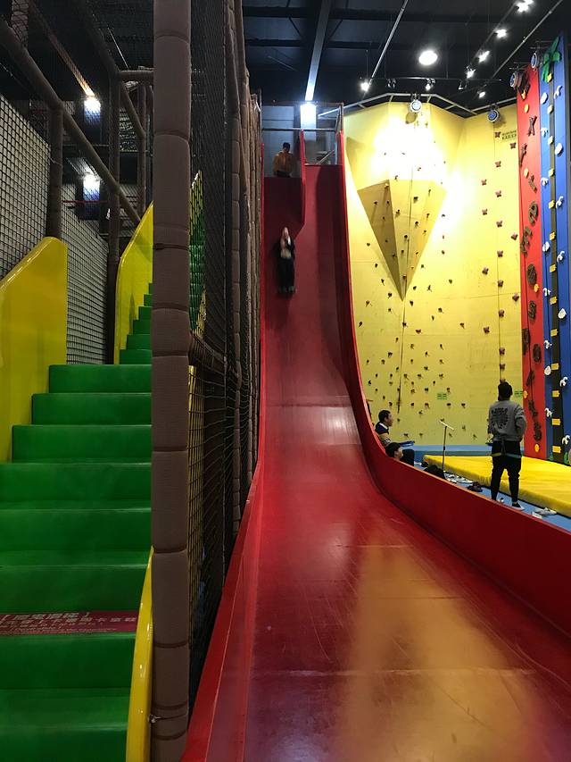 很多事情不能细想,也不能考虑太久,90度的滑梯,幸亏没考虑太久,不然1次都不敢玩了,下去时背部和滑梯分离的瞬间,简直叫出了杀猪声。一个小妹妹玩了n次,她蹦出一句“你压力不太大啊~” 好吧~ 看来现在的小朋友压力很大。