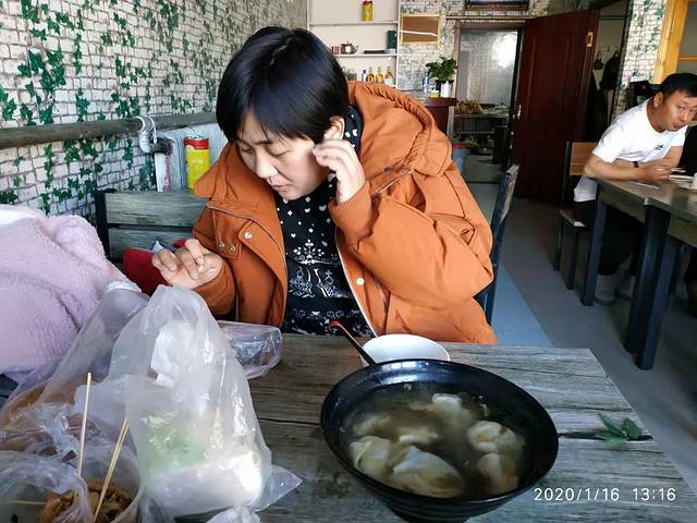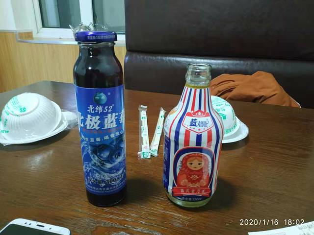 龙顺园老板特别的热情,早早的替我们把炕烧的暖和的房间里烧的暖和的,进去以后暖暖呼呼的,炕睡的很舒服。这里的菜价都是统一的价,说的贵其实也还好,分量特别的足,我们点了一个猪肉白菜炖粉条加豆腐48。又点了一碗紫菜蛋汤20,加一碗饭5元。还给我们送到房间里。今天来了一个大团队,他们订了三间房,他们因为是报的团,所以老板提前嘱咐我们说我们的房间是60,他们的房间是150,因为带团的要提成75,他们也只拿75。菜的分量特别的足。我们买了一瓶哈啤,又买了一瓶蓝莓汁。坐在老何的房间里,吃着饭喝的酒很满足。吃完以后老板还送了我们一个切好的冻梨。