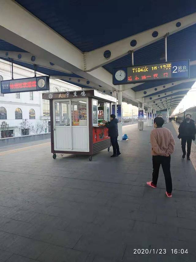 火车站里基本上没有什么人,工作人员都戴着口罩,并没有对我们进行什么安全的检查,什么都没有。就连出站票都没有检查,直接让我们出去了。我们以为不戴口罩会给我们发口罩,以为会看到很多的士兵,什么都没看到,就是一副萧条的景象。