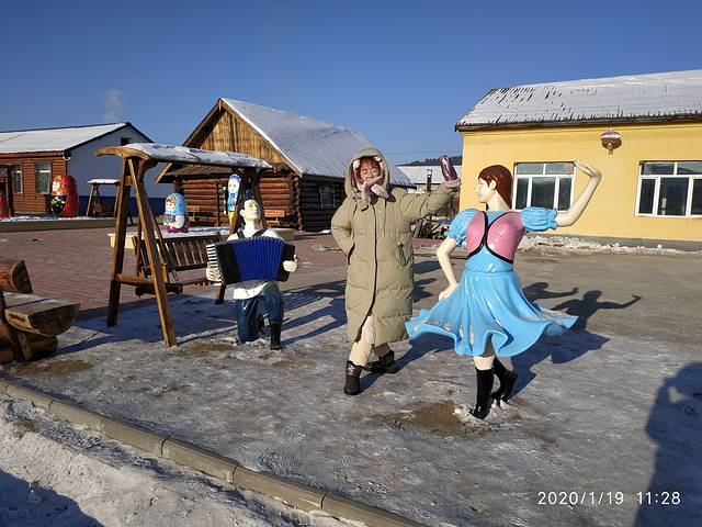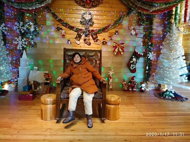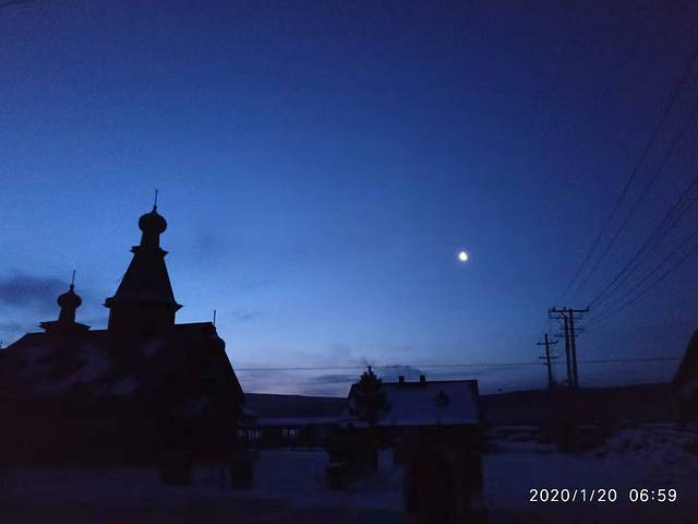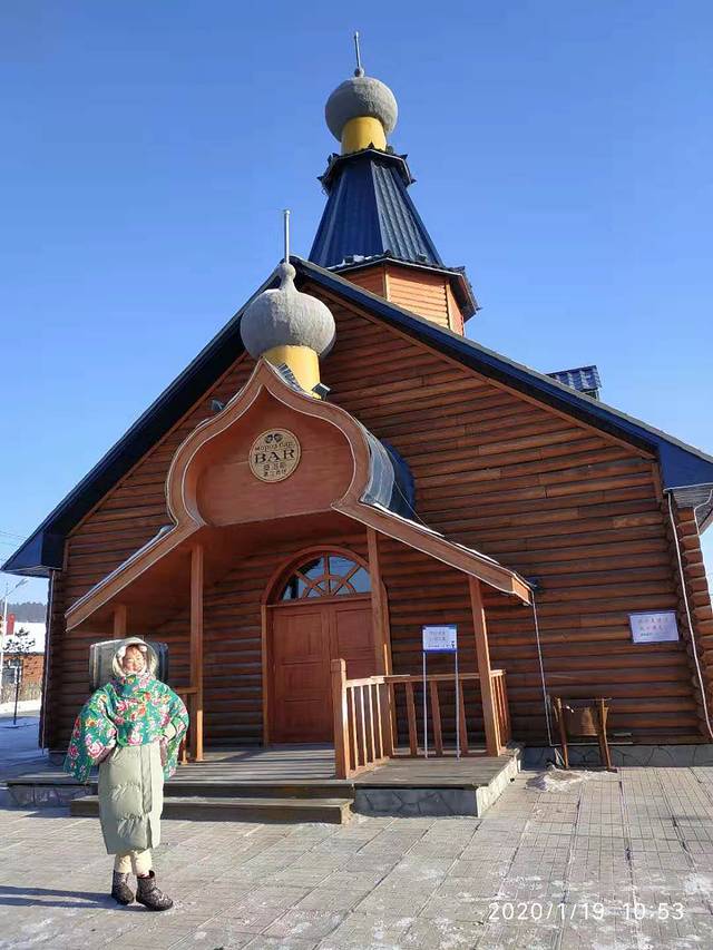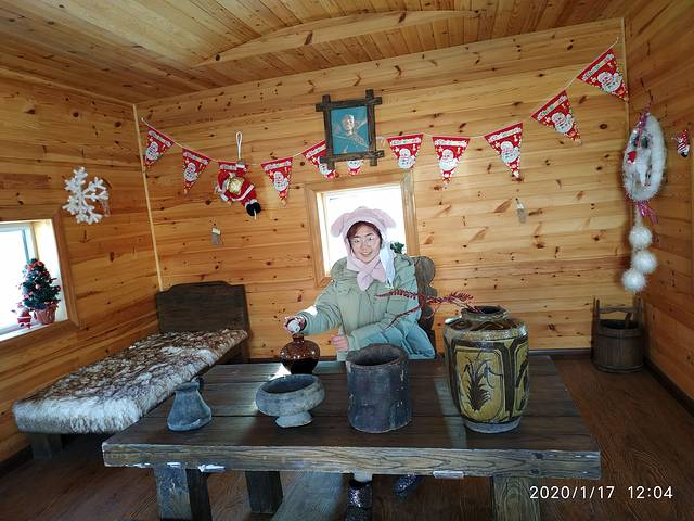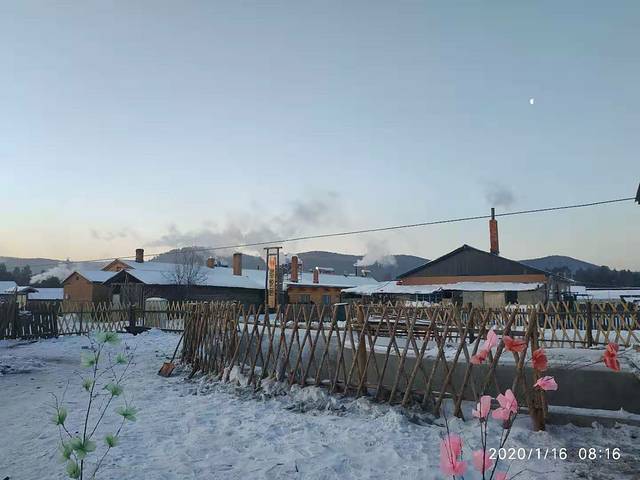 吃完面以后我妈嫌行李重,再加上可能身上不是很利落,所以打了个的,第1次在里面转了一圈5块钱就把我们拖到了漠河客运站,花了40元就进去了,漠河客运站里真的很暖和,然后我们就上了车,坐在车上等着2点准时发车,车子是一个不大的巴士,四处漏风。车门司机要朋友用棉絮及杂物,把车门缝都挡住。车窗也是用塑料的纸把它封住了。车子在无人的路上开了两个半小时,路上没有一点信号,越开越偏远,觉得是不是选择是错误的,怎么住的这么的遥远,用了两个半小时才到目的地,而且车子在不停的给人送货。我就觉得自己像个圣诞老人一样,到一个点司机就下去送个货。感觉这里的人出来一趟真的很不容易。车子还开进了军营,把我俩兴奋的以为可以下车照个相。里面的那些兵哥哥,我妈说都长得很帅气。车子把我们送到了村里,我们住的位置其实很中心。就在教堂,实际上是个酒吧的口子,那里就下车了。下车时天色已晚,已经4:30了,炊烟袅袅,很有生活气息,我们拖着行李就去了我们定的龙顺园。