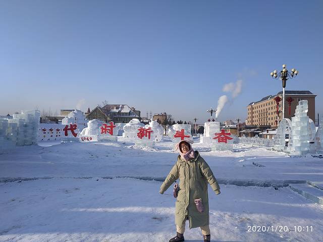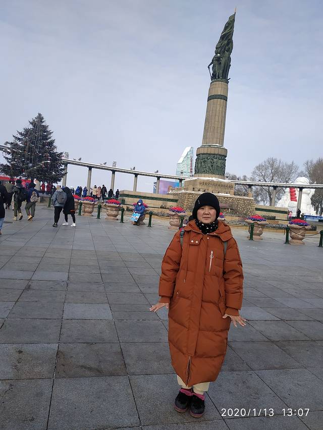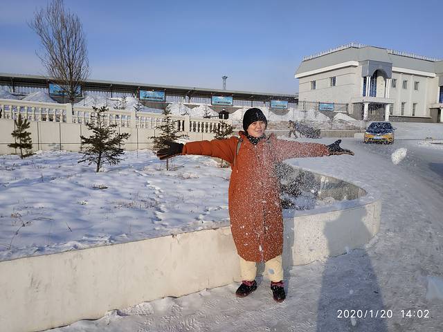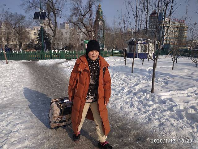 据说我们来的那一天晚上下了雪,他们这里的雪就像是粉子,用手捧一撮,往天上一抛。晶莹剔透,一点都不粘。火车站的门口都是有冰雕,而且地上特别的滑。刚出站我们又新奇,到处去看站台。