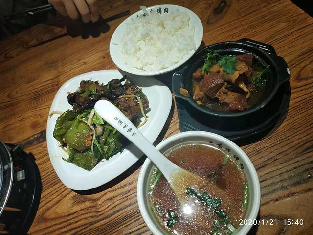 然后我们又去打卡,网上说的果戈里书店说那是最美的书店,从外观看并没有觉得很惊艳,进去了以后对我来说也不是很惊艳,但是里面很不错的,就是温度很舒适。我和妈找了一个软座,然后我给妈找了一本特特别喜欢看的,盗墓笔记10年。这一下正对他的胃口,看着就不走了。坐了一段时间肚子咕咕叫,然后我就在大众上搜了附近的美食。地图上显示是不是很远,可是实际上在路上走那很远,因为天又比较冷,地又不是很好走,来到一个也不起眼的地下室,吉香牛坛肉。也许我们对吃要求很高,还是不对胃口,总觉得很一般很一般的,觉得这里的菜都没有味道。都觉得是无味的,