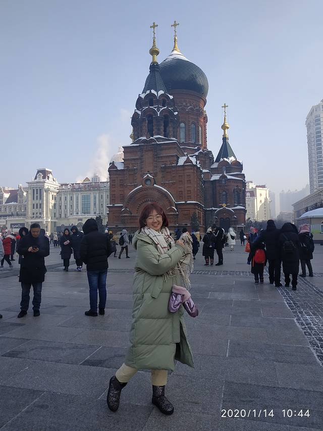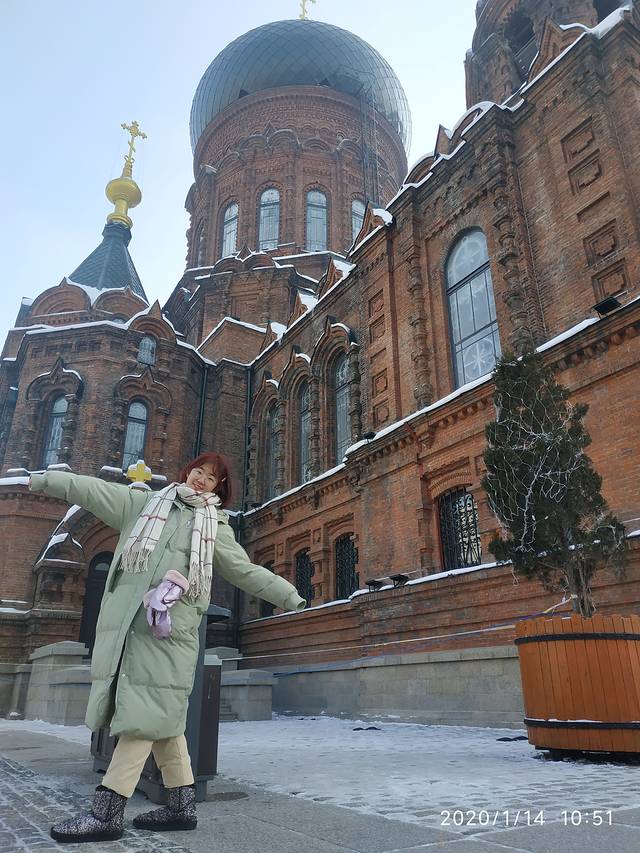 在哈尔滨实在不能长时间走路,虽说只有1公里,但是走起来不知为什么觉得走得很远,所以我们就打了一个公交,两站路走走停停。把我们开到了索菲亚大教堂。索菲亚大教堂和我们有不解的渊源,每天都要经过他这里看看,他还有中央大街,每天都来这里报到了。