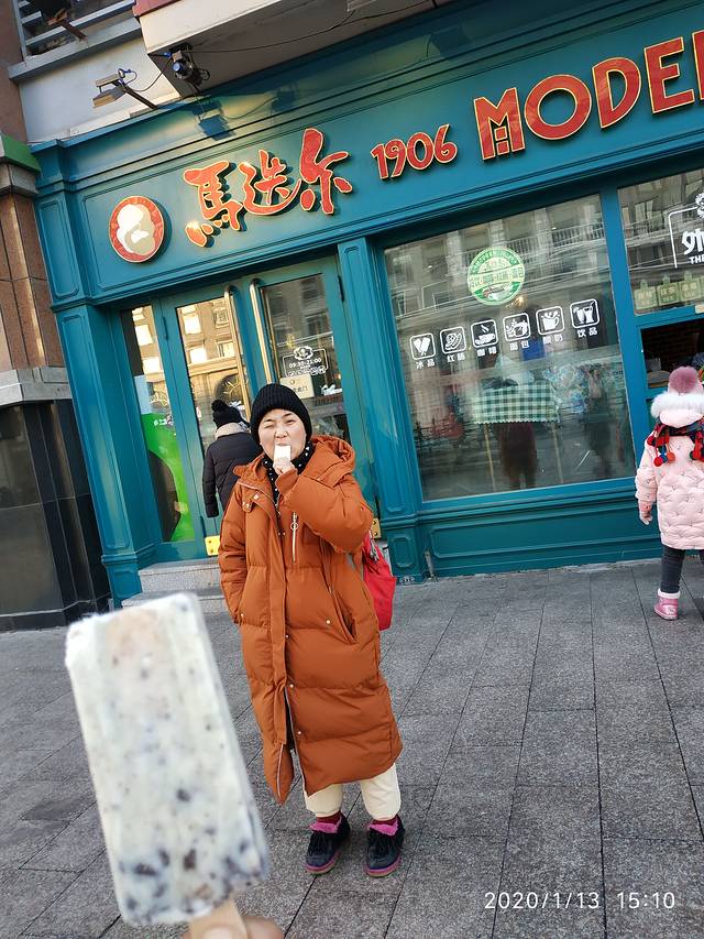 周边就有一个马迭尔冰淇淋,价格不是特别贵,妈妈买的原味,我买的是巧克力碎,最后感觉原味的才是真正的好,吃原味的是5块巧克力的是10块。吹着冷风,在零下20度吃个冰淇淋,太有东北味儿了。