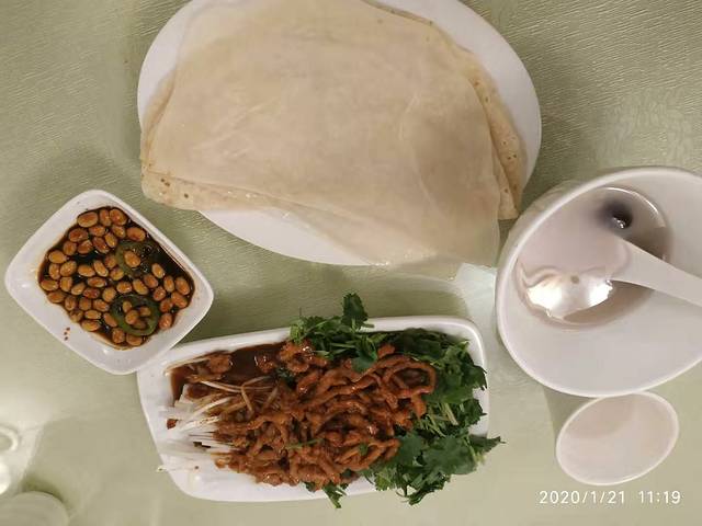 在网上搜的春饼比较好,我们就去了老昌春饼,就在中央大街上很好找,在地下室,里面的人也比较多,里面有点憋闷。也许大东北窗户都不通透,又有热气,所以很憋闷。我们很不习惯,点了几个网上推荐的特色京酱肉丝,还有筋饼和春饼。味道很是普通,也许东北没有什么很好吃的东西,所以大家都觉得还不错。