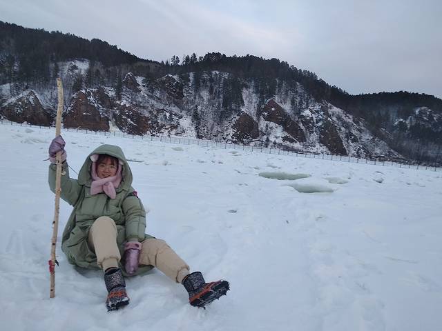 江面上有很多的娱乐项目,有大滑梯马拉车雪爬力,你能想到的都有,就是收费有点贵,滑梯示50块钱不限时,其他的开车什么的都是80块钱几分钟。自然对于我们这些穷游党就是看一看就行了,然后在冰上面找了一块雪地打滚,跳跃,雪面不是特别的滑,但是上面会有几道冰,是用来给那些雪圈或者是滑板拉着跑的。