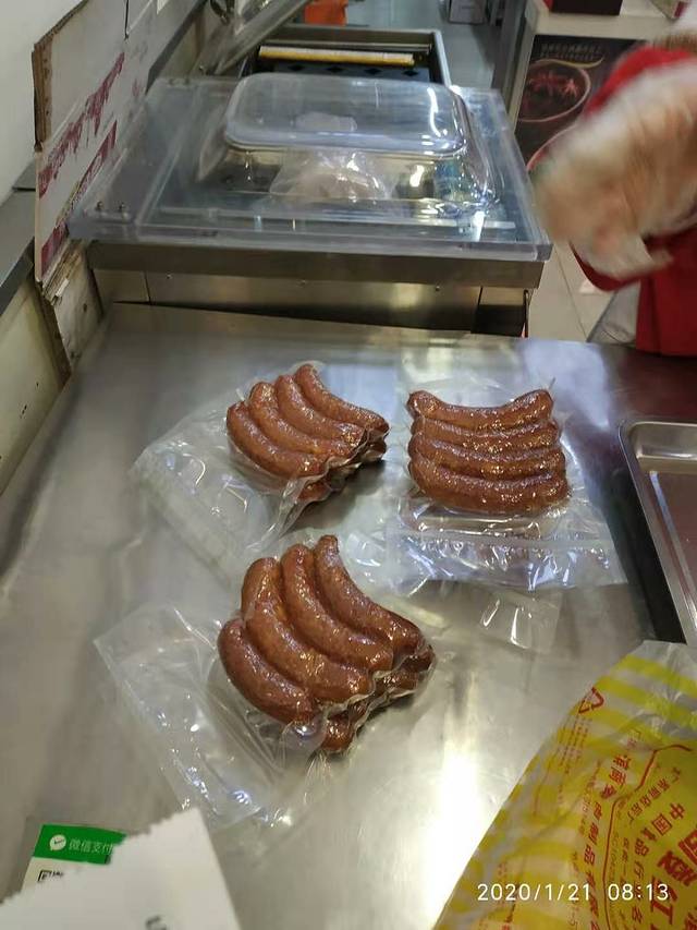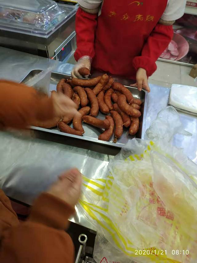 有的人排了几次队,买了一车的红肠,妈妈买了300块钱的,就只是一个小袋子27小根