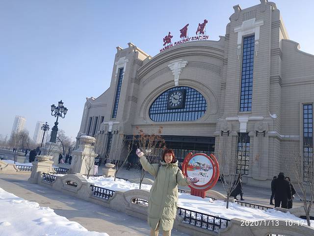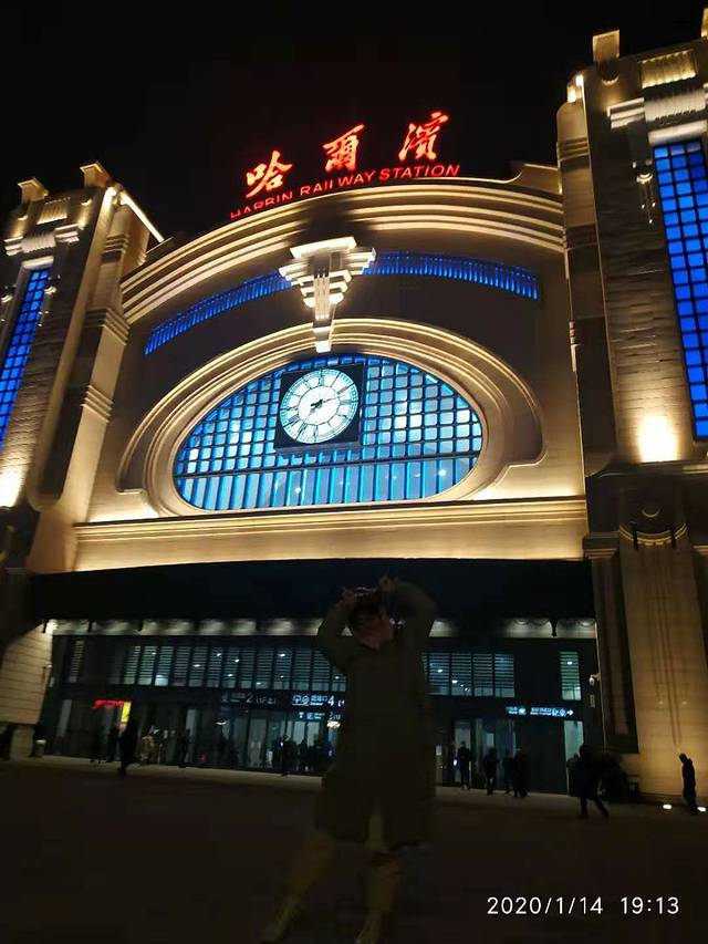 晚点了半个小时到达了哈尔滨,哈尔滨的车站很有俄式风情,和我见到过所有的火车站都不一样,非常的有设计感,我和妈妈开始吞云吐雾,脚上本来是穿着上文说的那双皮靴,出了站到出站口,实在招不住了,换上了雪地靴。