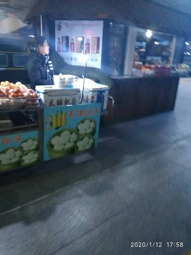 天津站要停很长的时间,都是叫卖天津包子和黄瓜的。越往北走越来越冷,出来放风。
