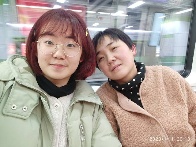在网上订的一家民宿是在大水晶街。什么南极街南马路,南极市场南平街,每一个站的名字都这么的像。大水晶街里头有好多栋的房子,马路上都结冰了,特别难走。本来手机有满格电,出站之后突然直线下降。上车用支付宝刷码,一开始都打不开,我的妈妈只好背上零钱用,零钱丢。