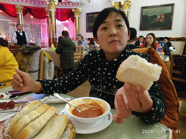 东北的分量多我们也不想吃了,决定还是去吃俄餐。这一家没人儿。环境还特别不错,因为没人特别的安静,服务也特别的好,菜品我们觉得很合胃口,可能分量特别特别的少。吃了三家的鹅餐,觉得还是这一家,感觉是最好的环境,分量都是不错的,和第1家画眉比起来,这里的面包只有两片,而画眉点的面包是一盘子,至少有6片,煎马哈鱼片只有两片薄薄的两片。鸡肉串只有4块鸡肉加两片菠萝。总而言之就是分量少,摆盘还是不错的,环境还是很好的,吃饭应该选择这种安静舒适的地方,我们太辛苦了,温度也特别适宜,吃着吃着我们就想睡觉,因为比我们这次订的酒店要暖和得多。,再一次强调,这次订的民宿特别的不舒服,除了地段好一点外,其他的都不行,没有温度。