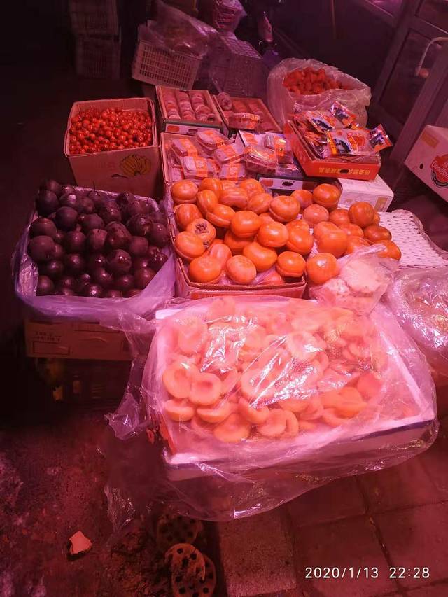 晚上10:00想出门感受一下20度的天气,妈妈的眼睛长了冰霜,其实并不冷,妈妈的手套都没有带,大水晶街旁边是一条菜场,晚上还有卖水果的,我们买了一个柿子被坑了,说是4块钱一斤,其实之后我们才知道柿子最多两块钱一斤,买回来特别特别硬,根本就没有办法吃,带回家之后第2天早上柿子特别特别的软,怎么都冻不硬了。