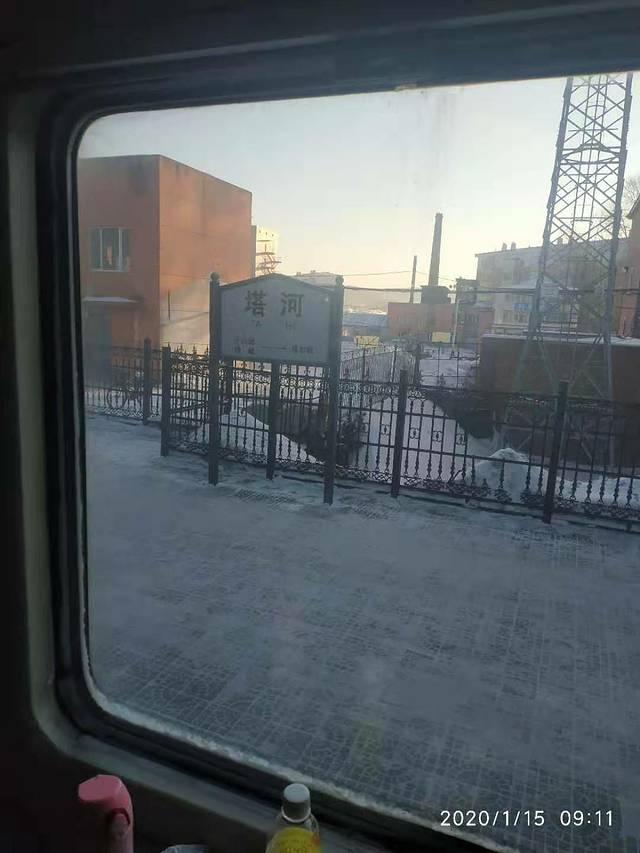 这是扶余站,站台很简陋的原因,在站台上就能摸到雪,天气预报上面显示已经是零下20度了,我连羽绒服都没有穿,或许是因为身上太暖和了。但是火车里真是热,一共飙了两次鼻血。