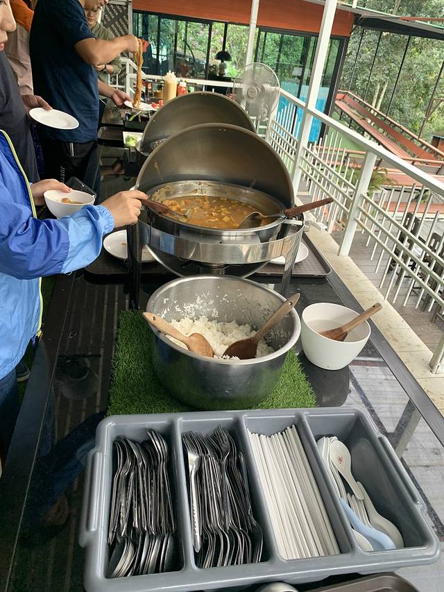 去到山上,有导游中文讲解注意事项,大部分能够听清楚,然后可以选择先吃饭,或者玩完再吃,后面体力消耗比较大,建议先吃饱再去玩,有简单的厕所可以上,有洗手有水喝,吃的是自助餐,几个简单的菜,有粉有饭,粉的味道比较奇怪,咖喱挺好吃,每人可以免费拿一瓶水,饮料要自费。