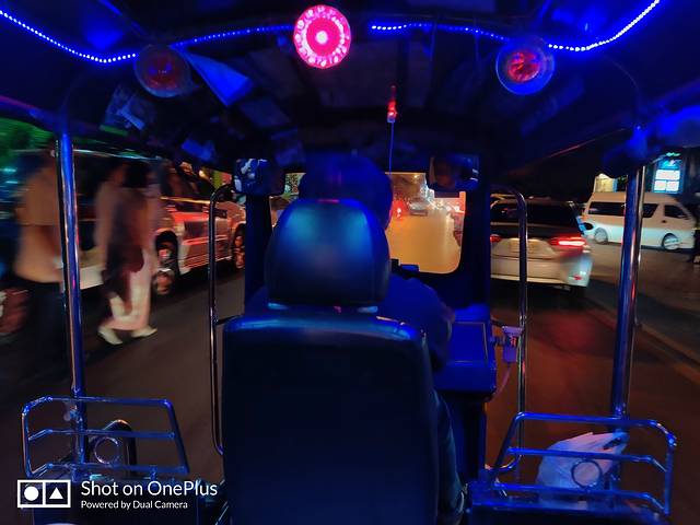 在酒店门口打了一辆小的,去到周六夜市大概100泰铢,酒店离夜市也不远,10分钟车程吧,感觉有点贵,但试试也不错,开得非常快,夜晚十分凉爽,很刺激!
