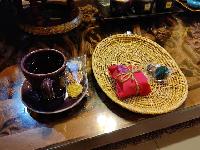 出去后会上一杯茶,还有好吃的炒米饼,还送一个手工皂和香薰钥匙扣,非常可爱。