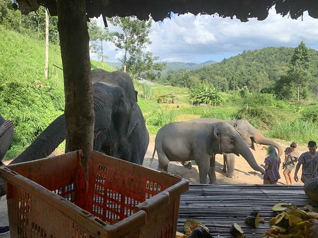 不想伤害大象,所以没有选骑象画画之类的项目,纯喂大象和洗澡,都是退休的老象,还有一只小象,老象都是很乖很稳的,非常安全,小象会危险一点,但有保护措施,大象都很可爱,其实这些淳朴动物一般不会攻击人,除非人主动去伤害它们,所以有时候跟动物相处比跟人简单安全。